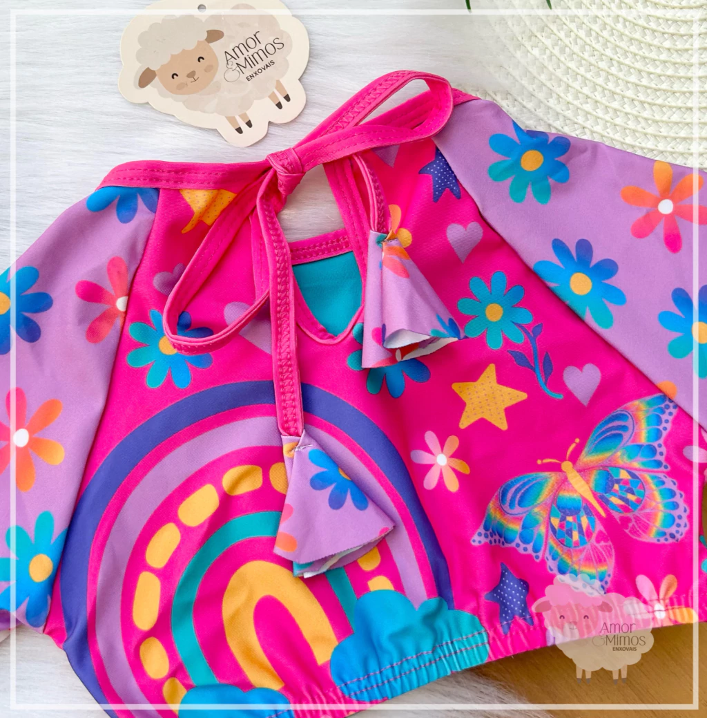 Confeccionado em lycra com fator de proteção UV 50+ que tem uma estrutura capaz de bloquear os raios nocivos à pele.