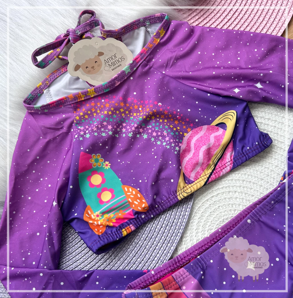 Confeccionado em lycra com fator de proteção UV 50+ que tem uma estrutura capaz de bloquear os raios nocivos à pele.