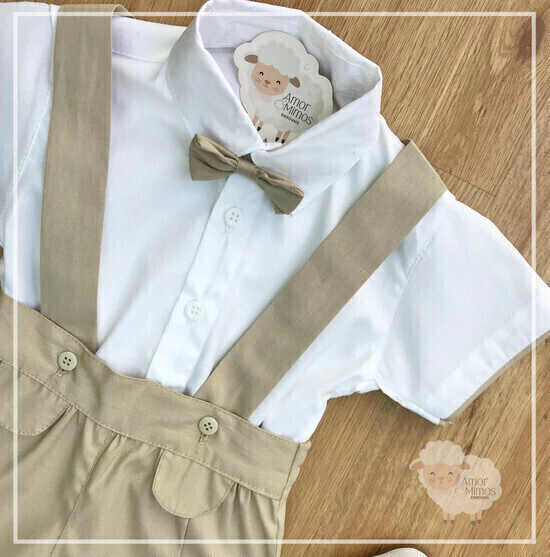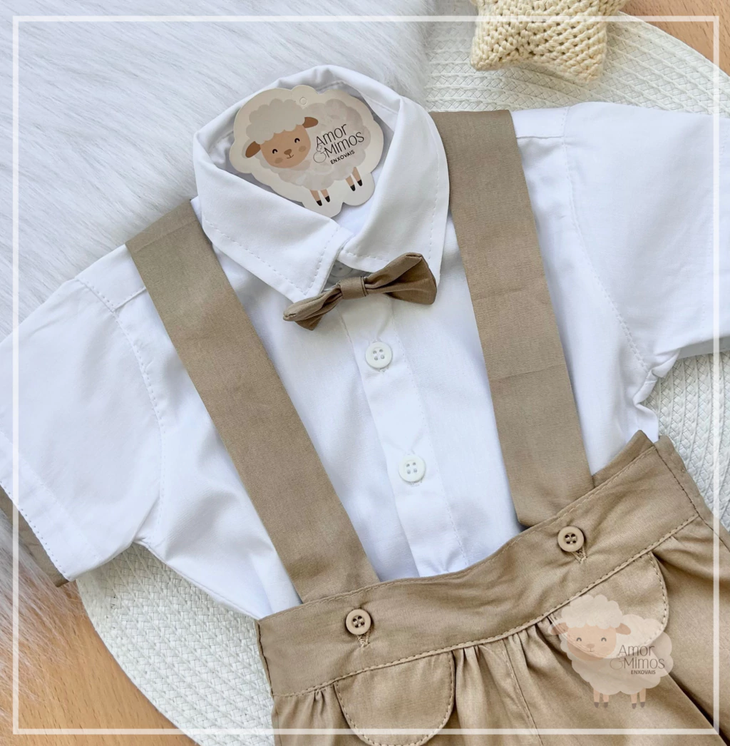 *Look Composto por: Camisa Botão, Bermuda com suspensório e Gravata Borboleta.