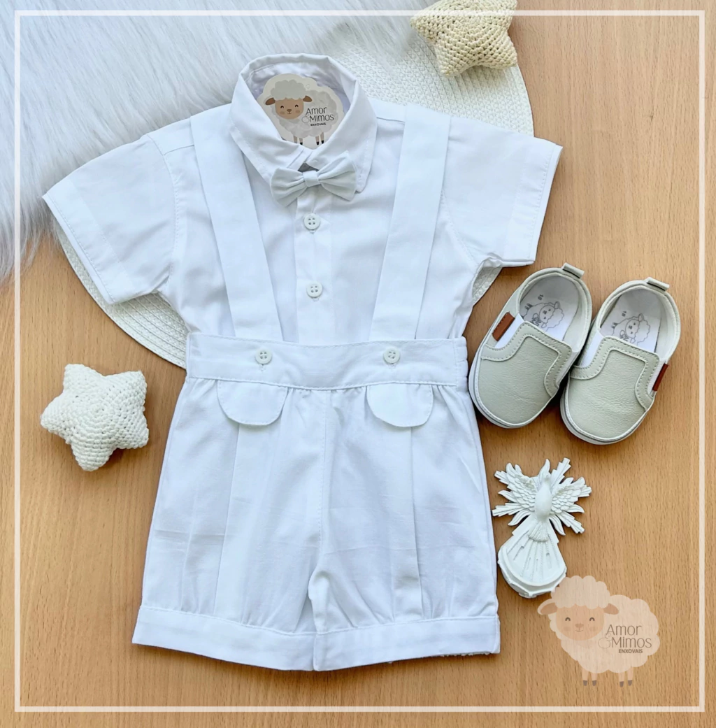 *Look Composto por: Camisa Botão, Bermuda com suspensório e Gravata Borboleta.